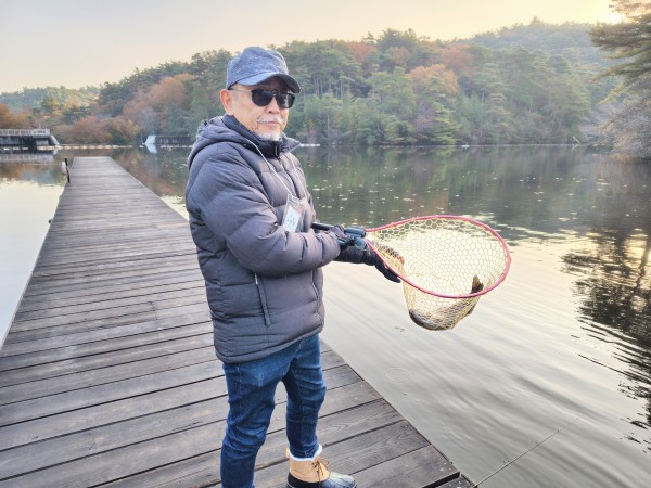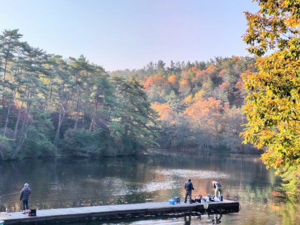 おはようございます。11月14日(金)の通天湖です。早朝は濃い霧が出ていましたが、それほど冷え込むこともなく、良いお天気となってきています。