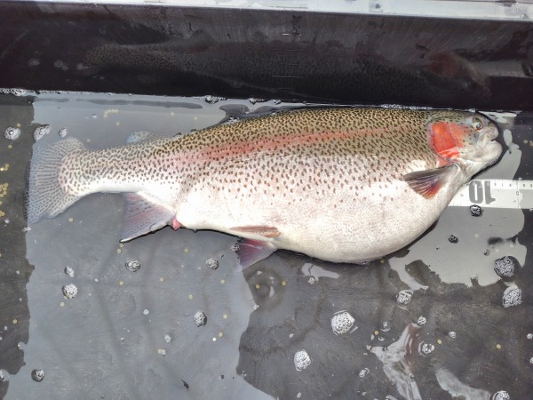 左ワンドのミドルエリアにてスプーン(キューム)でヒットした66cmのレインボー!