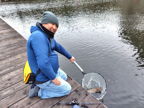 日中もどんよりと曇り、気温は低く雪がちらつく時間もありましたが、水温が安定しているせいか、トラウトの活性はいい感じでした。
