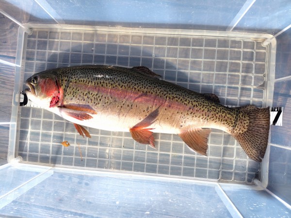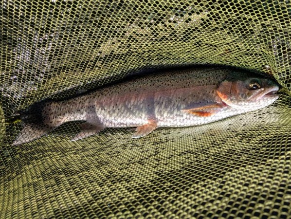 右ワンド川筋の噴水近くにてルースニングでヒットした40cm台後半のレインボー♪