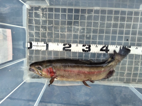 右ワンド奥のシャロ―エリアにてトルネードでヒットした53cmのレインボー!
