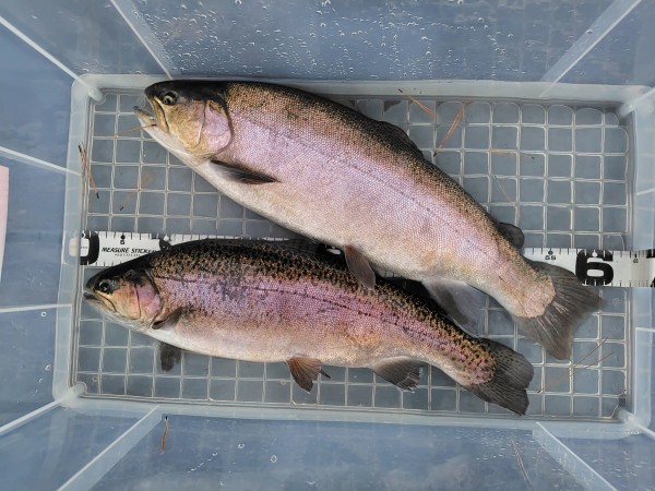 右ワンド川筋にてメタルバイブでヒットした59cmと、フェザージグでヒットした51cmのロックトラウト!