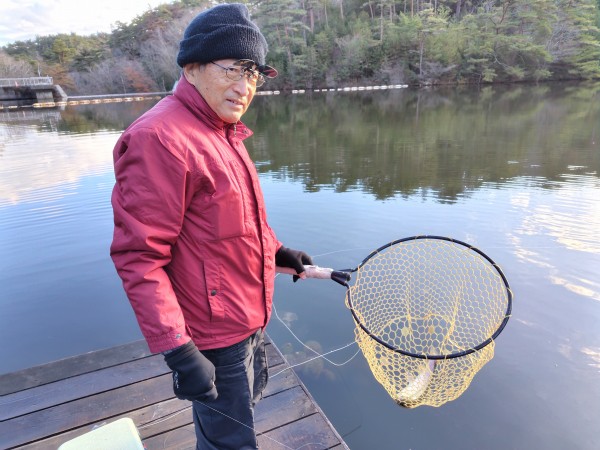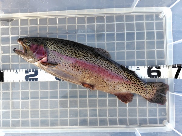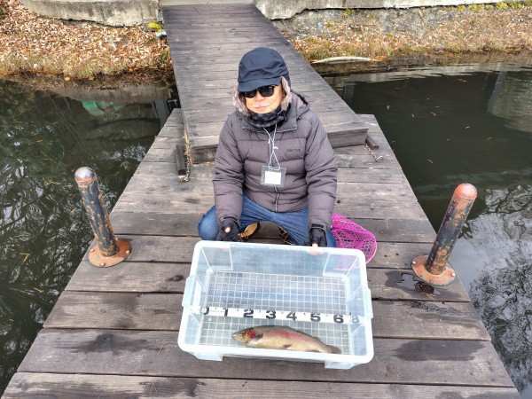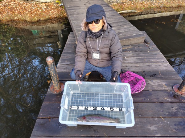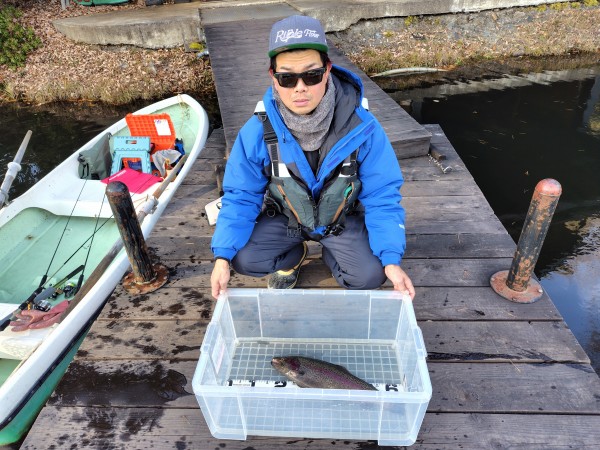 右ワンド奥のシャロ―エリアにてフェザージグでヒットした51cmのレインボー!