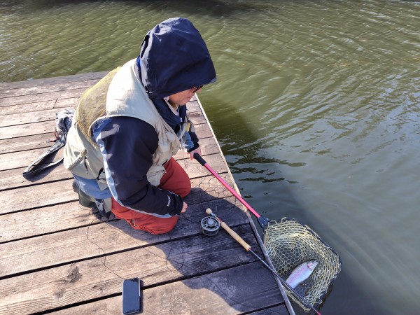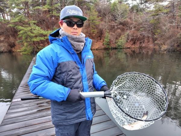 マイクロスプーンのボトムバンプでヒットした良型レインボー♪