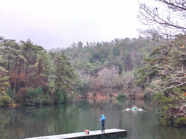 おはようございます。12月14日(日)の通天湖です。今朝7時の気温は7度といつもより高めで、小雨まじりの天気となっています。