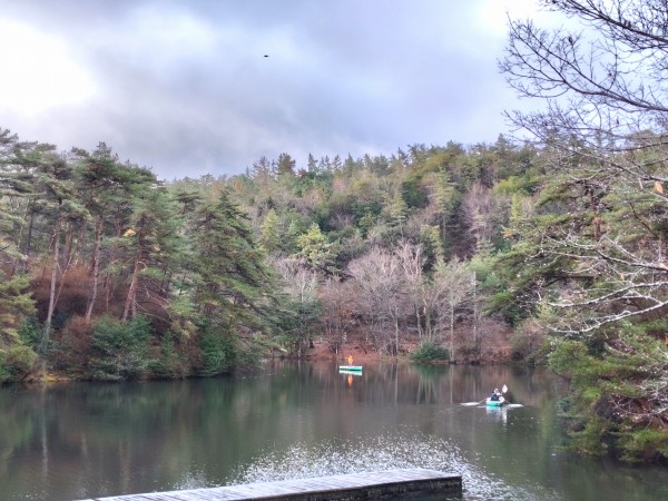おはようございます。12月15日(月)の通天湖です。今朝7時の気温は3度、小雪の降る朝で、湖面の凍結はありません。