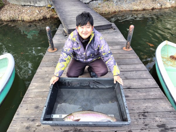| 右ワンド奥のシャロ―エリアにてフェザージグでヒットした54cmのレインボー! | |||